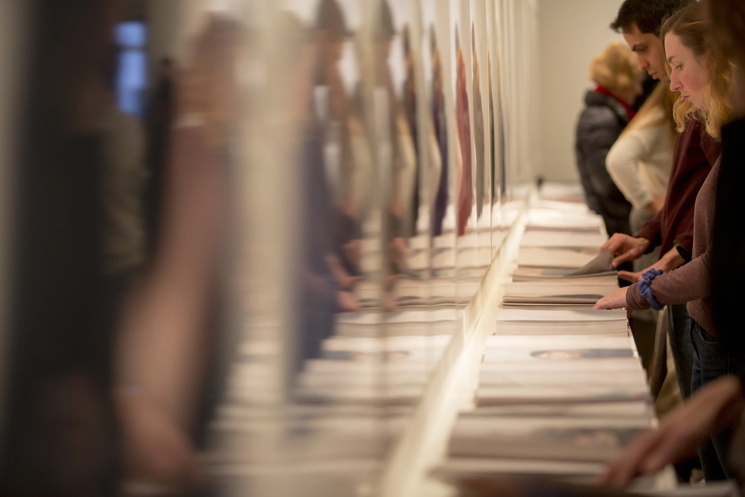 Visitors had a first look at the porcelain enamel panels while Ann Hamilton signed copies of her book. Sponsored by Dell Medical School.